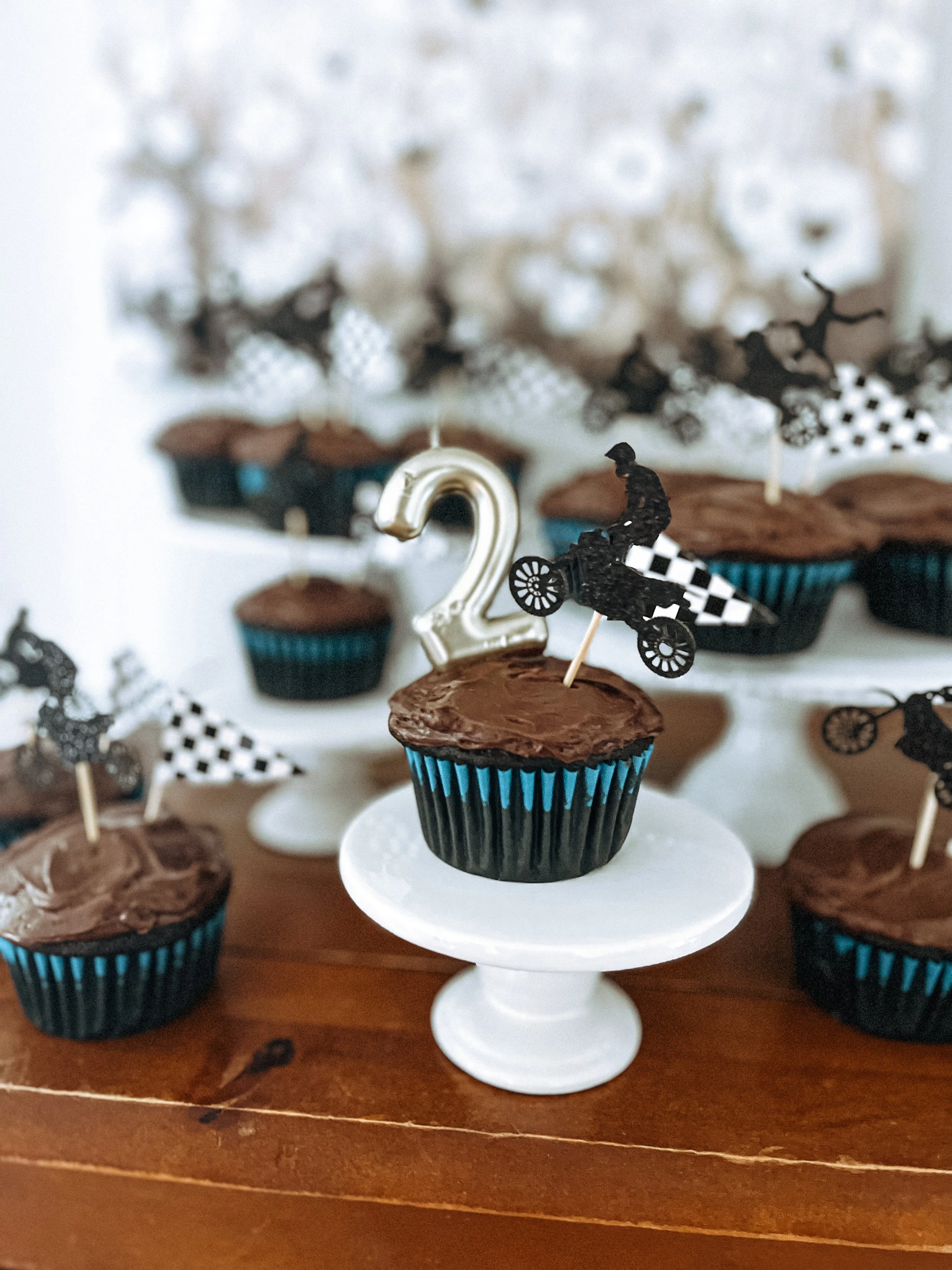 As i mentioned, my hubby loves motorcycles, so THANKFULLY we had some great props around the house already... And it doesn't hurt to have a mini motocross track right in your own backyard. But adding my personalized touch to things, like goody bags, cupcakes, you name it, is SO much fun for me!