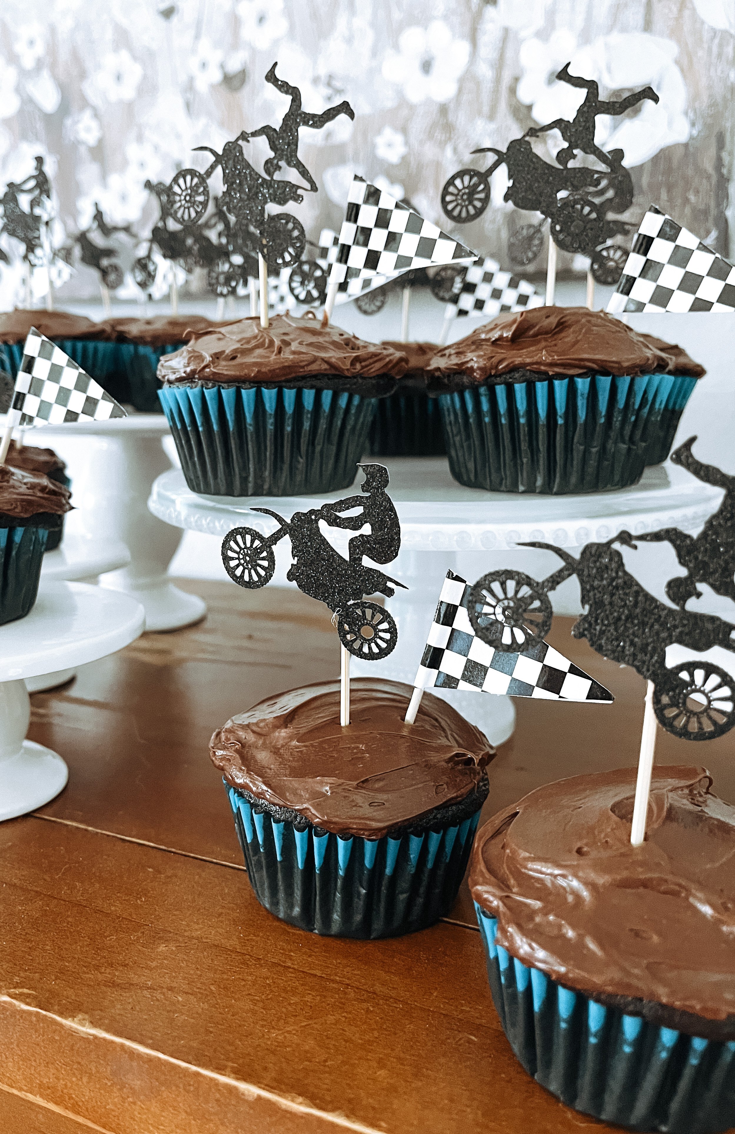 dirtbike rider cupcake toppers | Sunglasses | Stickers | Crazy Straws